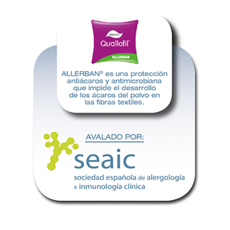 Una almohada ligera, confortable, de firmeza media-baja, posee gran volumen y es muy suave debido a su funda exterior 100% algodón. Compuesta de Fibra hueca siliconada Quallofil® ALLERBAN® de Dacron® que impide la aparición de ácaros, bacterias y hongos, máxima protección.