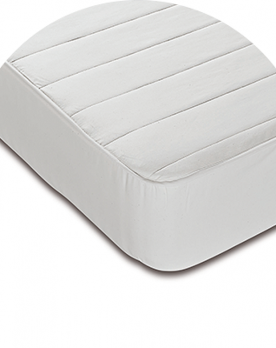 El cubrecolchón Algodón es un protector acolchado cuyo relleno se compone 100% de algodón natural. Producto hipoalergénico . Platabanda amplia en todo su perímetro para que se adapte perfectamente a todo tipo de colchón. Ideal para colchones articulados gracias a su acolchado lineal más estrecho en la zona de articulación.