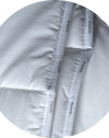Edredón compuesto por fibra hueca siliconada Quallofil® de Dacron® que permite la perfecta circulación del aire. Su tratamiento ALLERBAN® inhibe e impiden el desarrollo de los ácaros, gracias a su tratamiento antimicrobiano, al estar incorporado en la composición de las propias fibras, no se va con los lavados y conserva las propiedades higiénicas del producto.