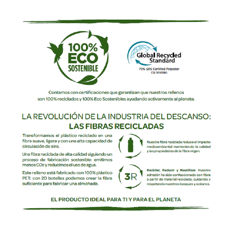 Una nota de color en tu cama. Fibra hueca siliconada reciclada e hipoalergénica.